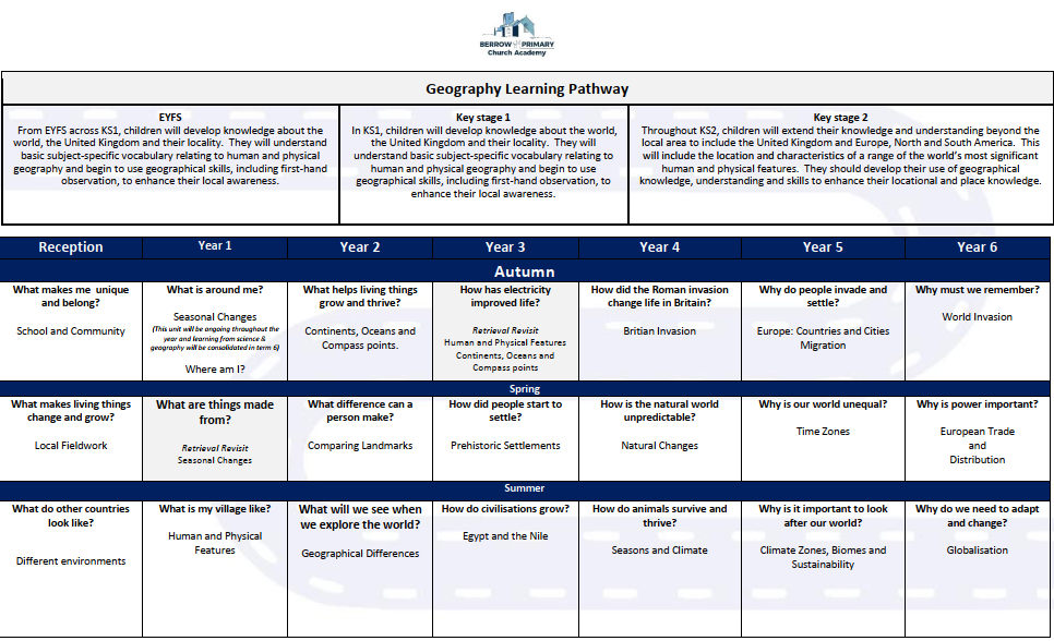 This learning pathway demonstrates the geography curriculum as it progresses through the school